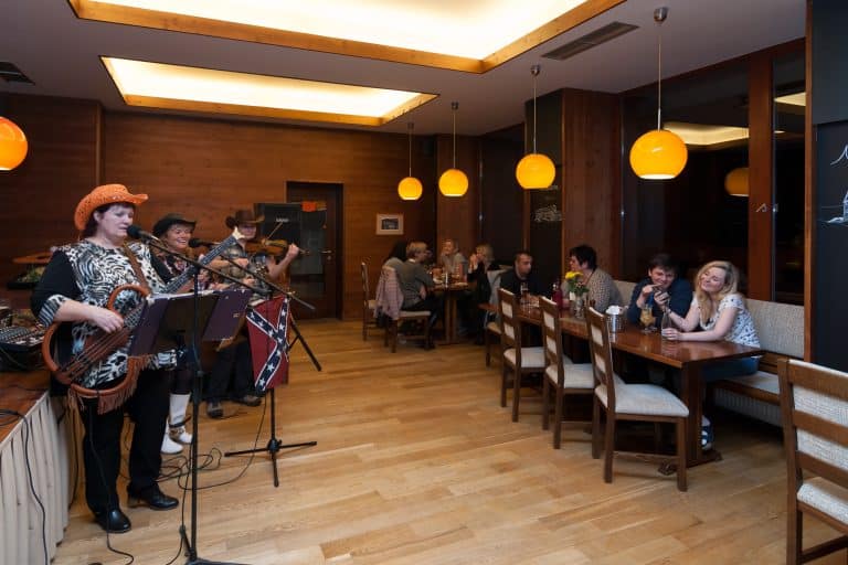 Taste our fabulous borscht, goulash served in homemade bread, or our desserts, all prepared with love and top-quality ingredients. You will also find a wide selection of non-alcoholic and alcoholic beverages, cocktails, and fine wines from Moravia. The restaurant space is available for companies and organized groups to host social events, training sessions, and corporate presentations.